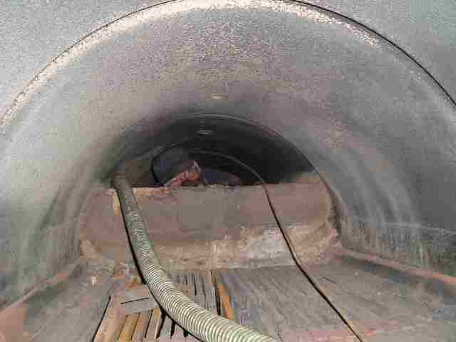 • The railway wagon has made its final move into the boiler house. It looks so much bigger now that it is inside - about half of the length of the building!