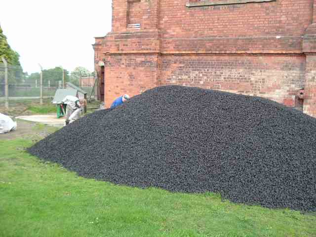 • 22 tonnes of coal turned up one day! This was all moved into the bunker in the boiler house in one day using nothing but wheelbarrows, shovels and lots of muscle power. The team easily accomplished this, but Oli wasn't much help! A well deserved rest.