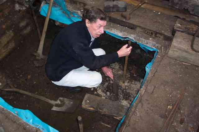 • The steam hammer anvil and baseplate have been located on the new timbers.
