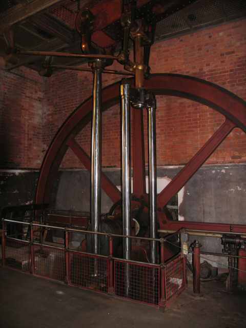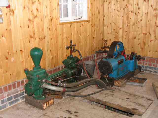 The agitator engine has also been moved into 'E' Engine House. This picture shows the flywheel and outline of the brickwork for the bed. The engine itself is shown in front of the storm water pump in this picture.