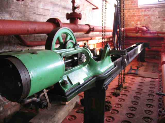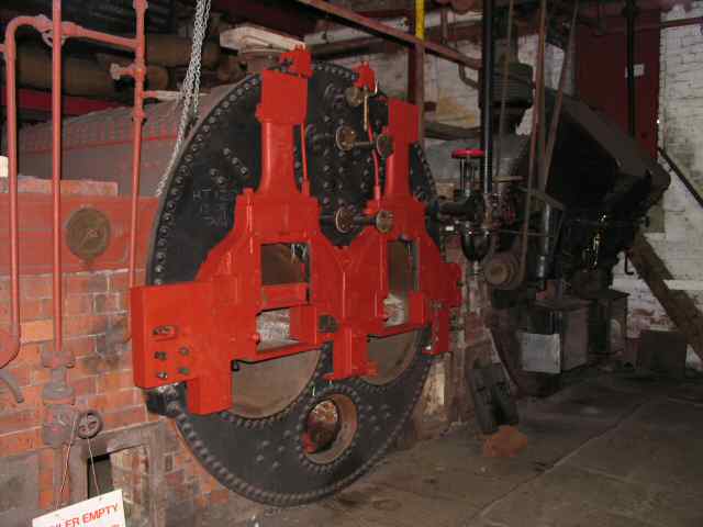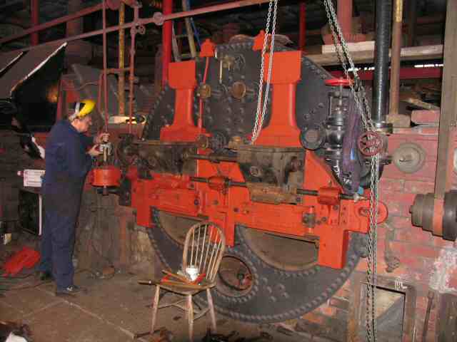 • Work has been progressing on the north (Derby) side economiser. The engine which drives the scraper gear (which spent last year in the display outside AB engine house) has now been relocated on its plinth. For safety reasons, this area of the boiler house can only be visited by a "hard hat" escorted tour.