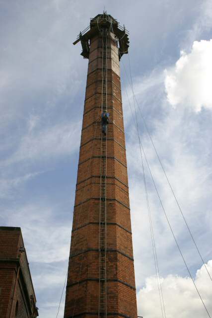 • It is now just over 10 years since the chimney was rebuilt up to its original height and a recent inspection revealed that some pointing work needs doing. Also the steel bands which surround the chimney need attention and the current standards are that these should also be bonded to the lightning conductor. Severn Trent has let the contract to do this work to Rafferty Chimneys.