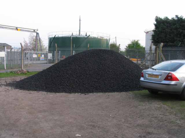 • 29 tonnes of coal have been delivered. In the background of the picture, you can see the new gas holder that is being constructed by Severn Trent. The gas is produced by the sludge digesters and is used to generate electricity which is fed back into the national grid.