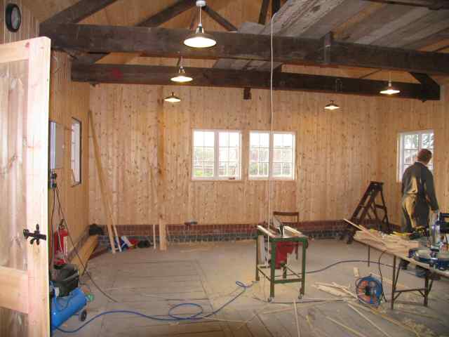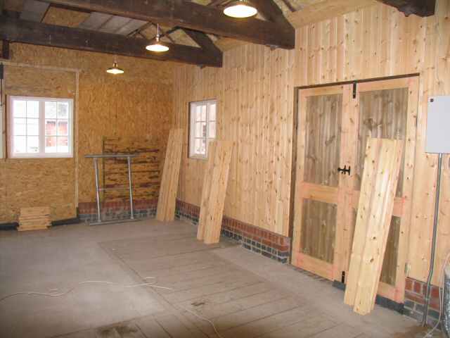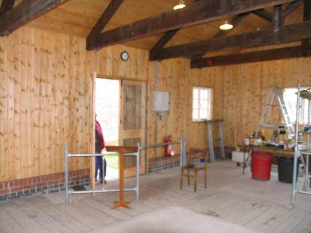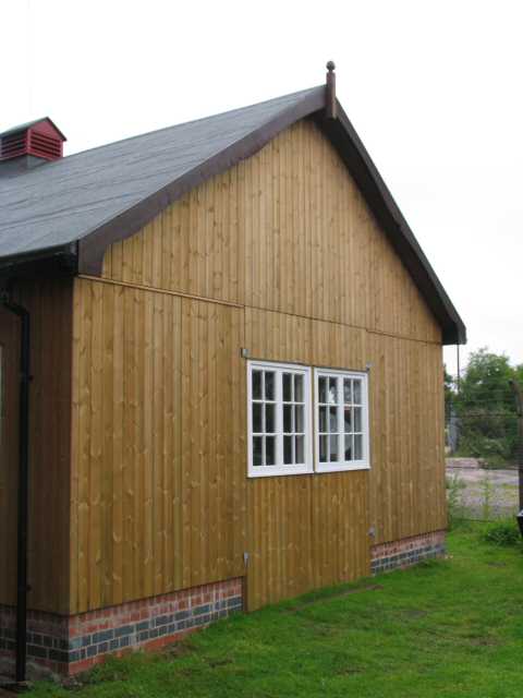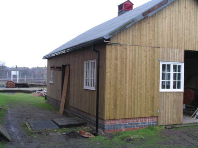 • The internal cladding of 'E' Engine House is now complete and has been treated with 2 coats of Danish oil. The electrical wiring has also been completed.