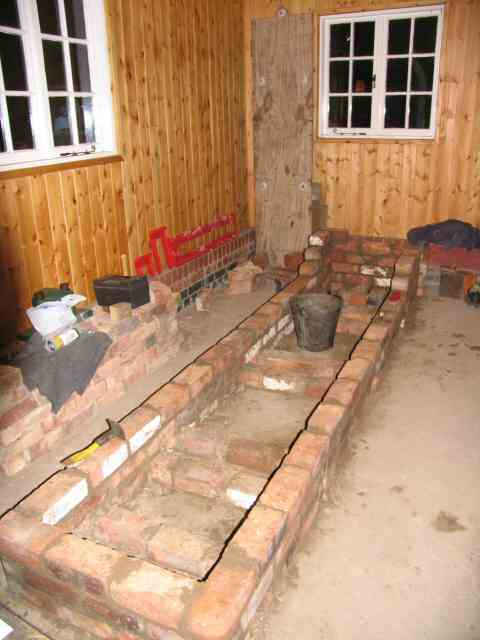 • The base for the agitator engine is taking shape with a traditional brick base under construction.