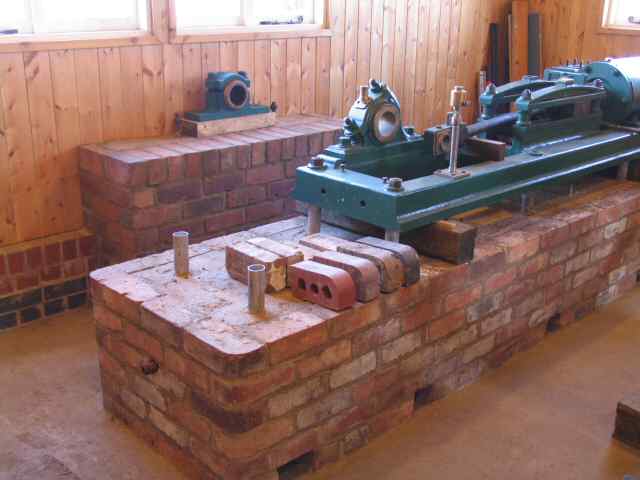 • The base for the agitator engine in 'E' engine house is progressing well, with the engine now mounted on the base. A supply of bull-nosed bricks is now required to complete the base. The base for the out-rigger bearing is now under construction.