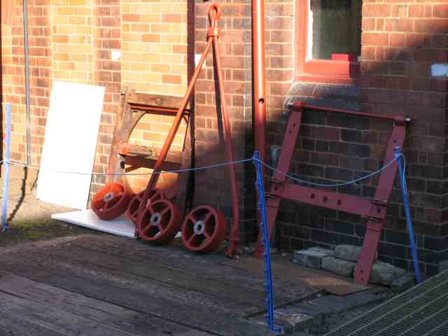• The finishing touches to 'E' Engine House are nearing completion with the addition of the barge boards and finials. Work has now started on the plumbing, beginning with the steam supply. A redundant 2" pipe which ran from the boiler house to the outside wall of CD Engine House will be reconnected and extended into 'E'. The pipe has been hydraulic tested and no leaks were found.