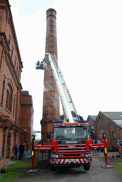 • Easter Monday was somewhat different from normal when Staffordshire Fire and Rescue Service came to spread the message about having smoke alarms fitted (but not in our Boiler House!!). They didn't arrive in a small fire engine - no - they brought the biggest hydraulic platform they have! Claymills is an interesting site for them to practice rescue exercises, so we may be seeing more of them in the future.