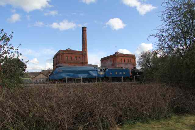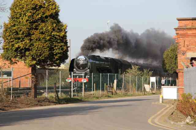 •A double headed steam train is unusual to see at Claymills. Here are LNER A4 4464 Bittern and K4 61994 The Great Marquess.