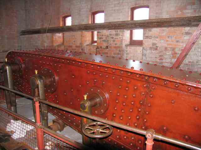 • A major long term project was completed in January - completion of installing the brass bands on C and D beam engines. Ever since the original cladding was removed, as part of the asbestos disposal works completed by Severn Trent before the Trust was allowed on site, the intention has been to replace this. New mahogany strips were purchased with the aid of a £4,000 grant and work commenced in 2000.