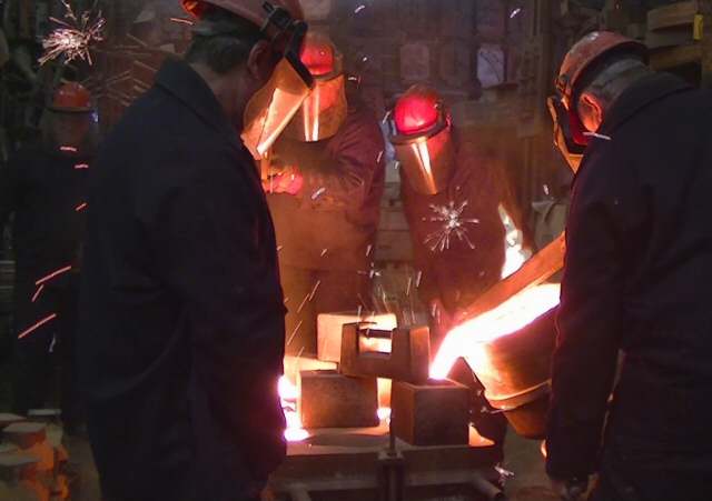 • Here are a couple more pictures from the foundry showing the casting of the replacement centre column for B engine governor. Photo-1 Photo-2