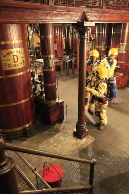 • We've been doing our bit for the community by allowing the fire brigade to conduct a rescue exercise at the Pumping Station. Engines from Burton-on-Trent, Lichfield and Abbots Bromley turned out. The scenario was that there had been an escape of steam and that three people were trapped in the basement which was in total darkness. Photo-1 Photo-2