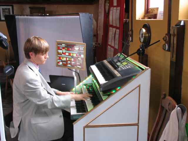 • On July 19th Claymills hosted what we believe was probably the first virtual organ recital held in a steam pumping station. The picture shows Richard Morgan of Rugeley playing. The Friends of the Burton Wurlitzer are planning on a repeat visit next year.